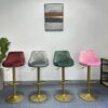 Ghế quầy cao S102: Bọc vải nhung Chân thép sơn tĩnh điện vàng.